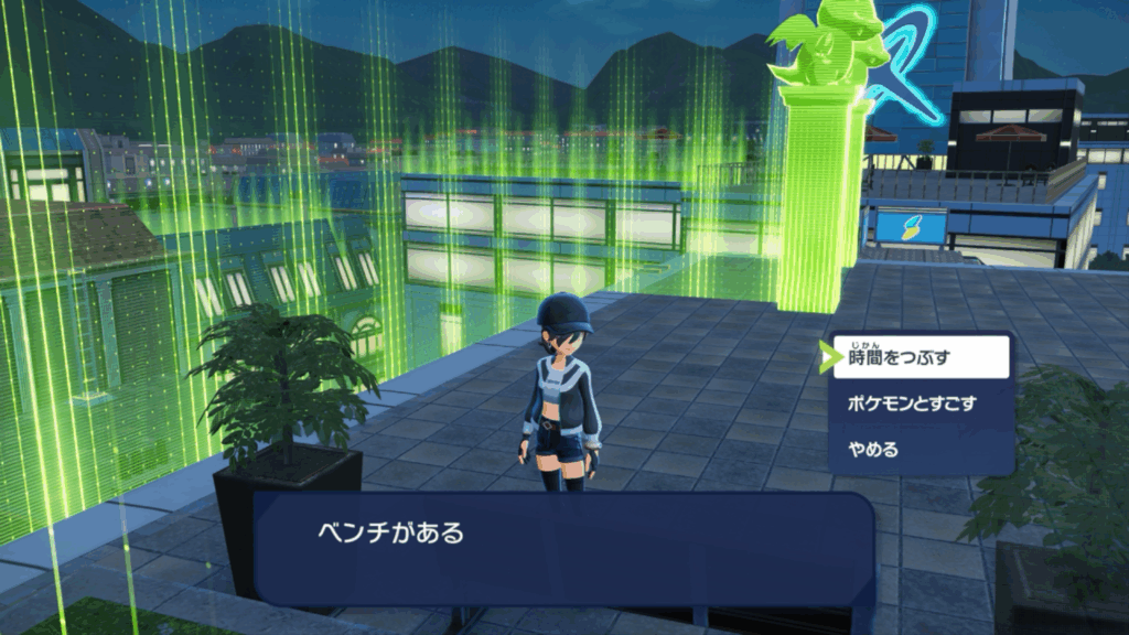 この場所のベンチを使う事でフォッコやボーマンダ、夜に出現するオンバーンも厳選する事ができます。