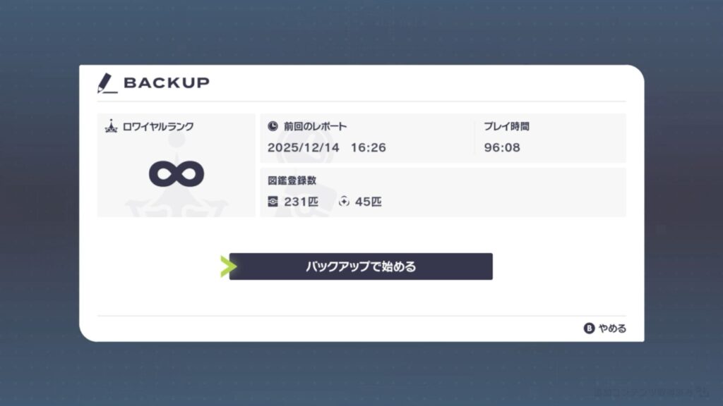 バックアップデータは直近でポケモンセンターを利用した場所が
