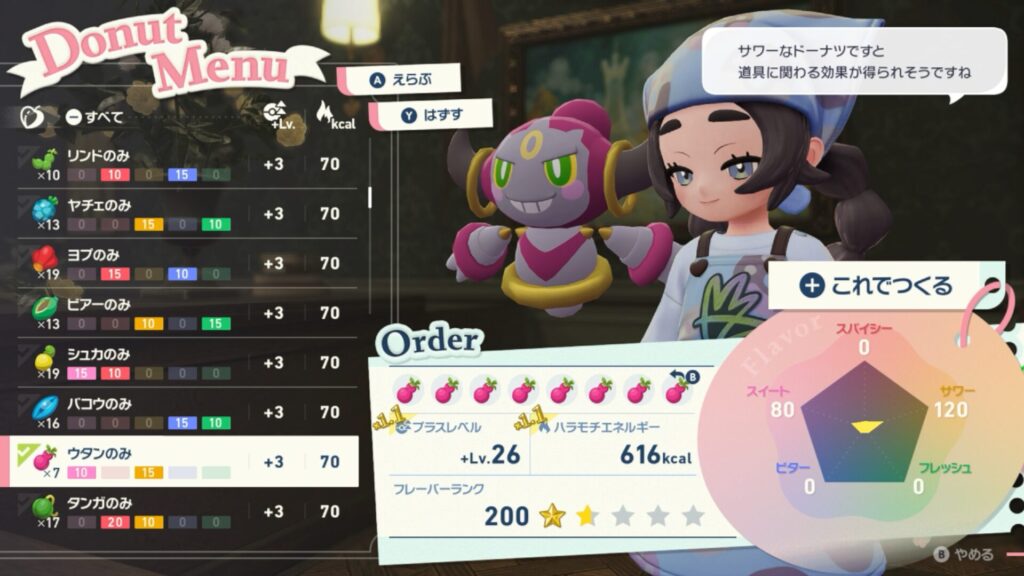 ドーナツはホテルZの受付でアンシャに話しかける事で作成することができます。