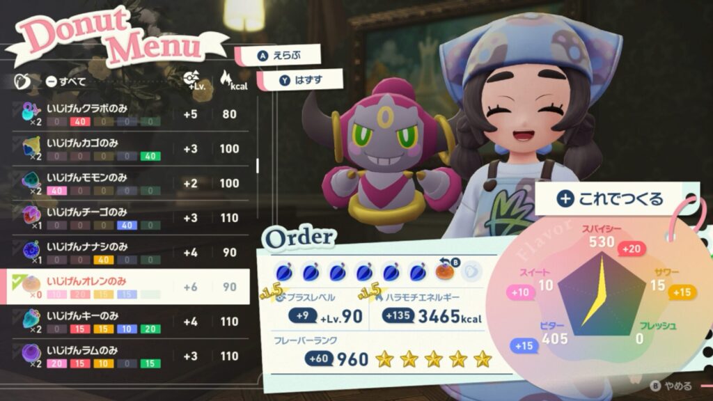 また、使用するきのみによって味やkcalが異なります。