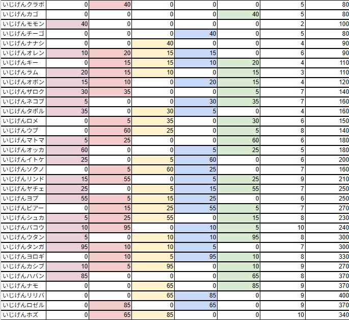 いじげんカシブのみやいじげんロゼルのみを8つ使用したものです。